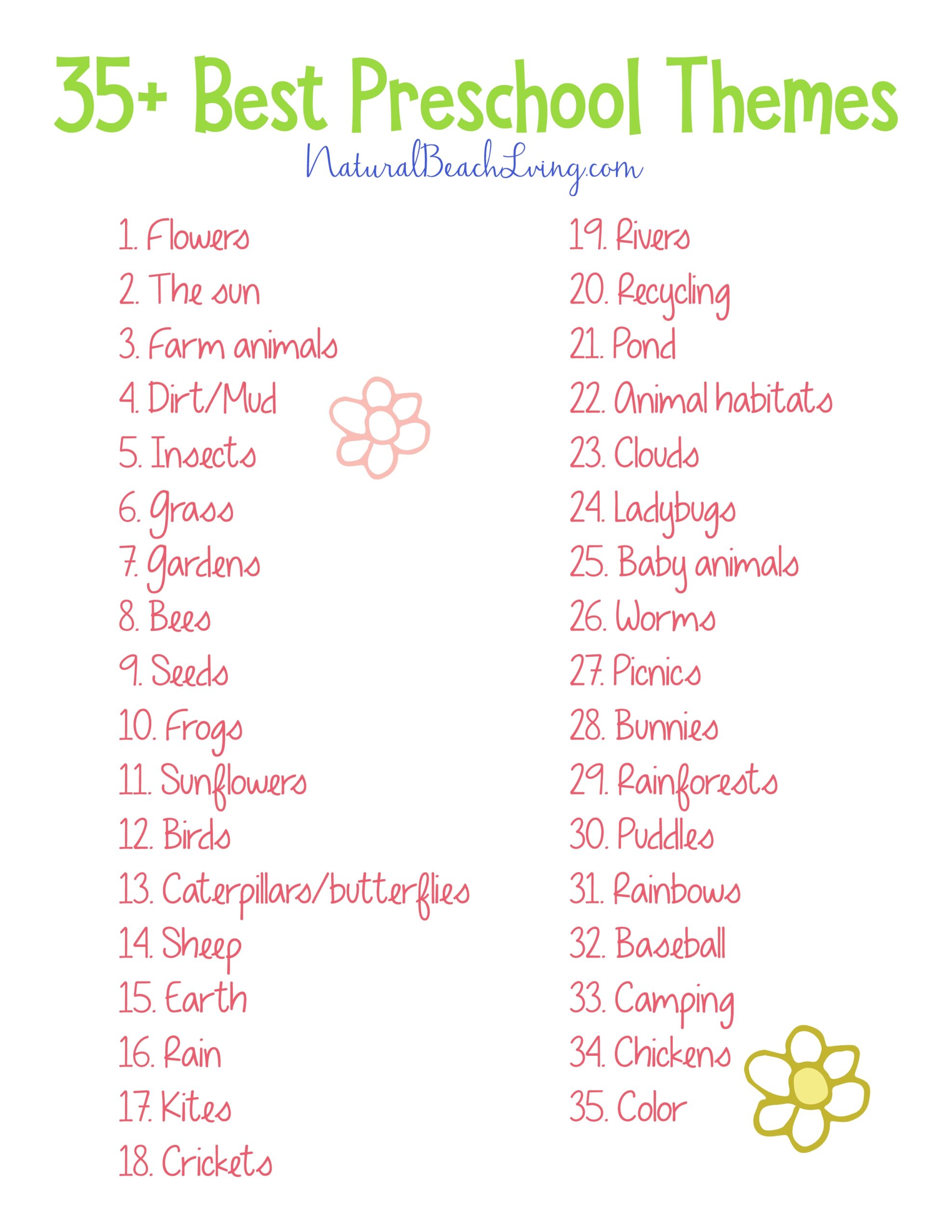 Printable List Of Preschool Themes