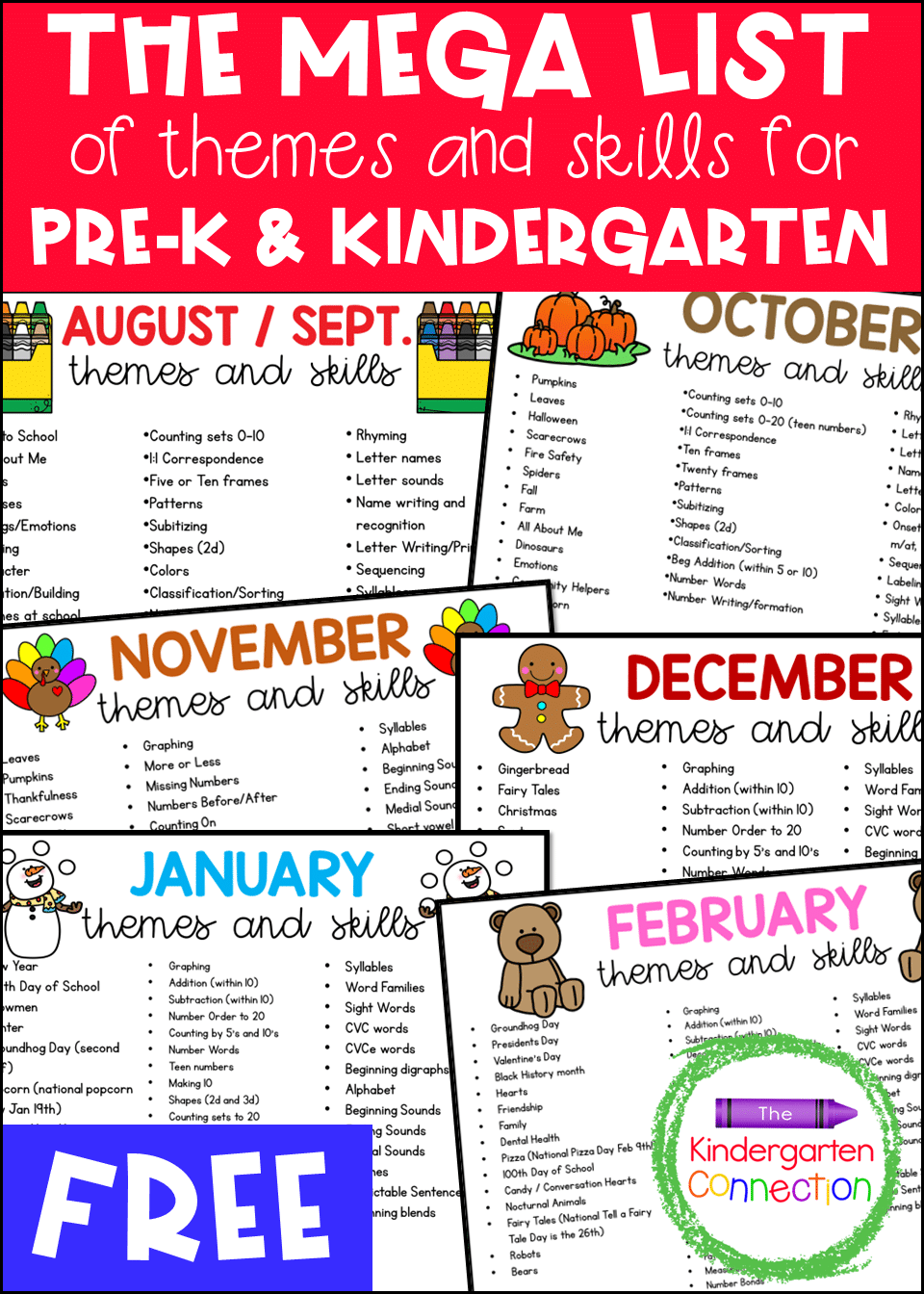 Free Mega List Of Themes Skills For Pre K And Kindergarten Lesson