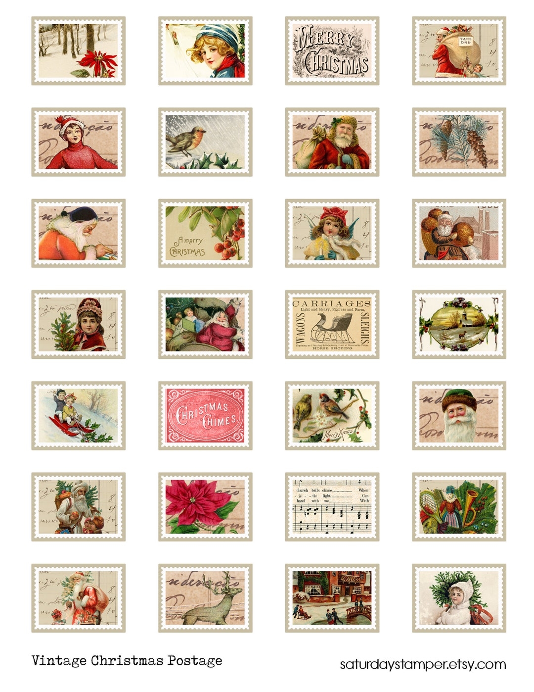 Faux Postage Stamps Christmas Stamps Digital Printable Vintage Worksheets Library
