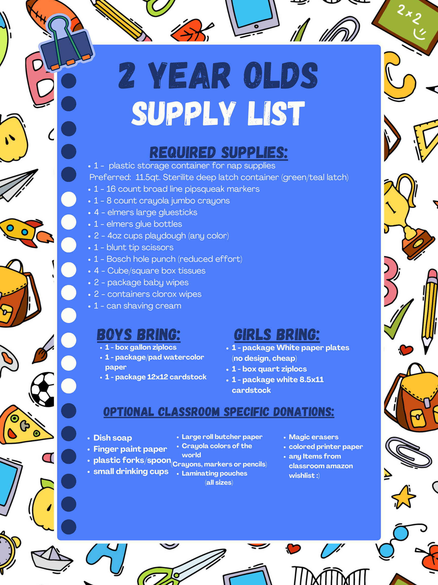 Preschool School Supplies Bethany Lutheran Church And School