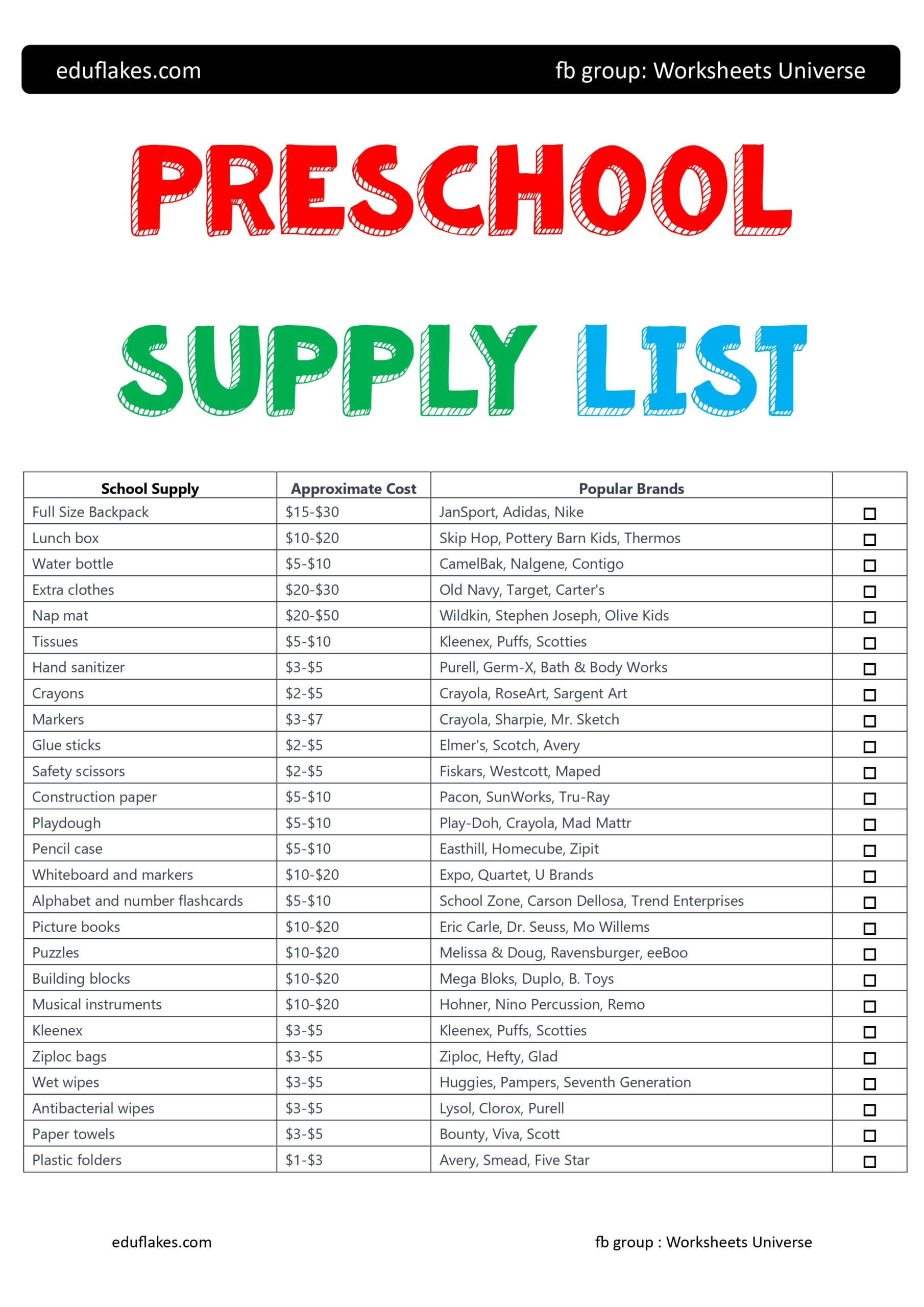 With this printable preschool supply list in hand, you’ll be well-prepared for your child’s first day of school. By checking off each item, you can feel confident that your little one has everything they need to thrive in their new environment. Here’s to a successful and fun-filled preschool experience!