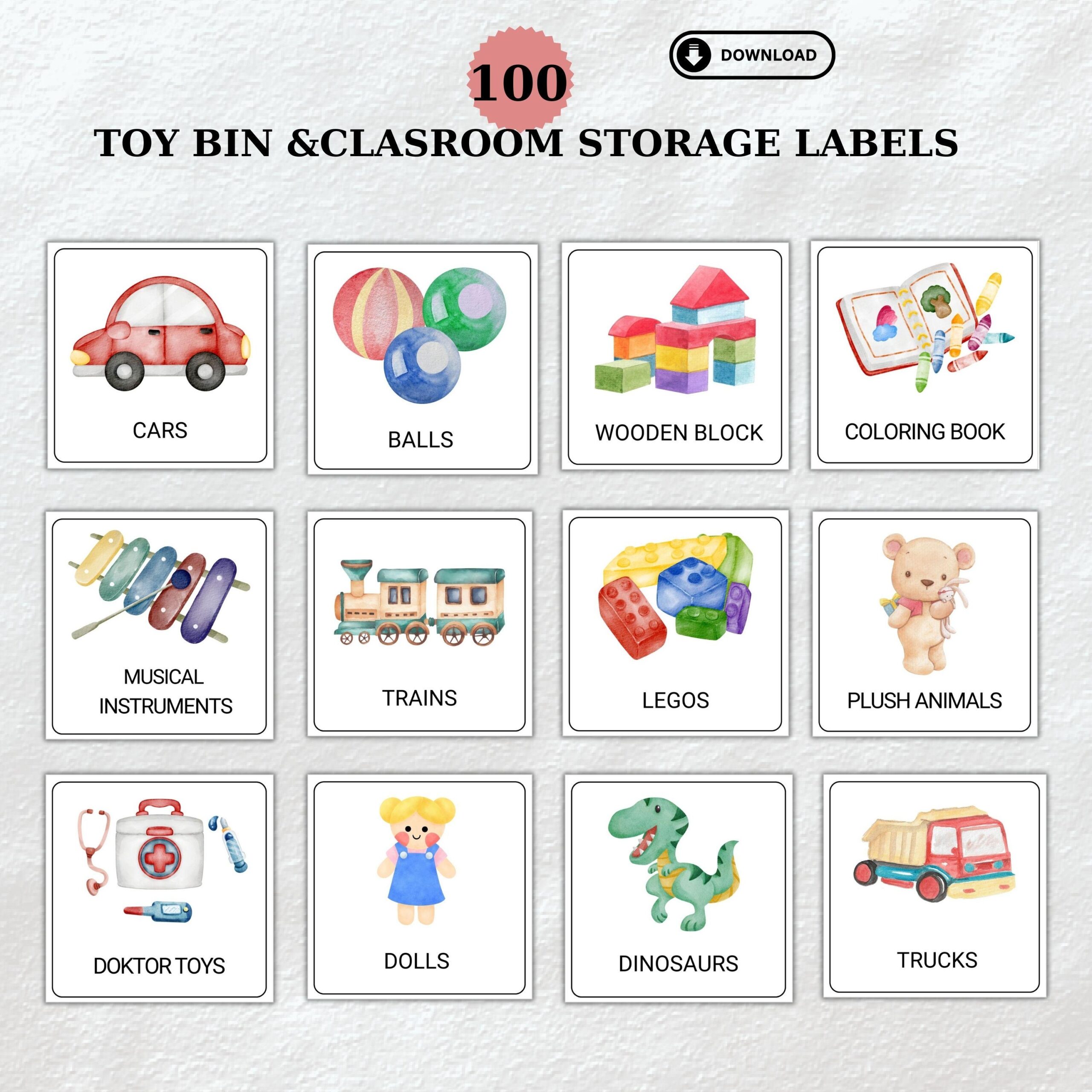 To use printable preschool toy labels, simply download the template, print them out on sticker paper, and cut them to size. Then, stick the labels on bins, drawers, or containers where the toys are stored. You can also laminate the labels for extra durability.