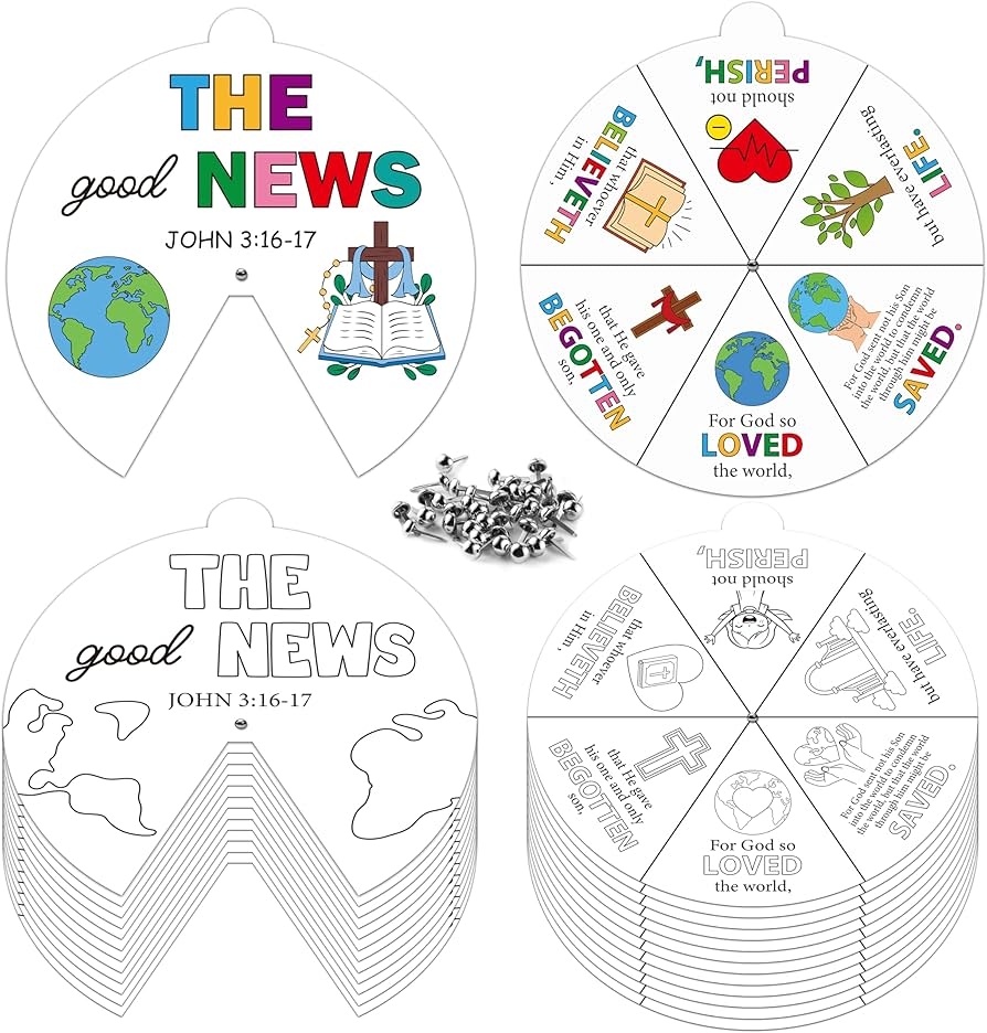 COcnny Religious Christian Craft Activities 24 Sets John 3 16 Coloring Crafts For Kids Color Your Own Bible Wheel Cards DIY Jesus Biblical The