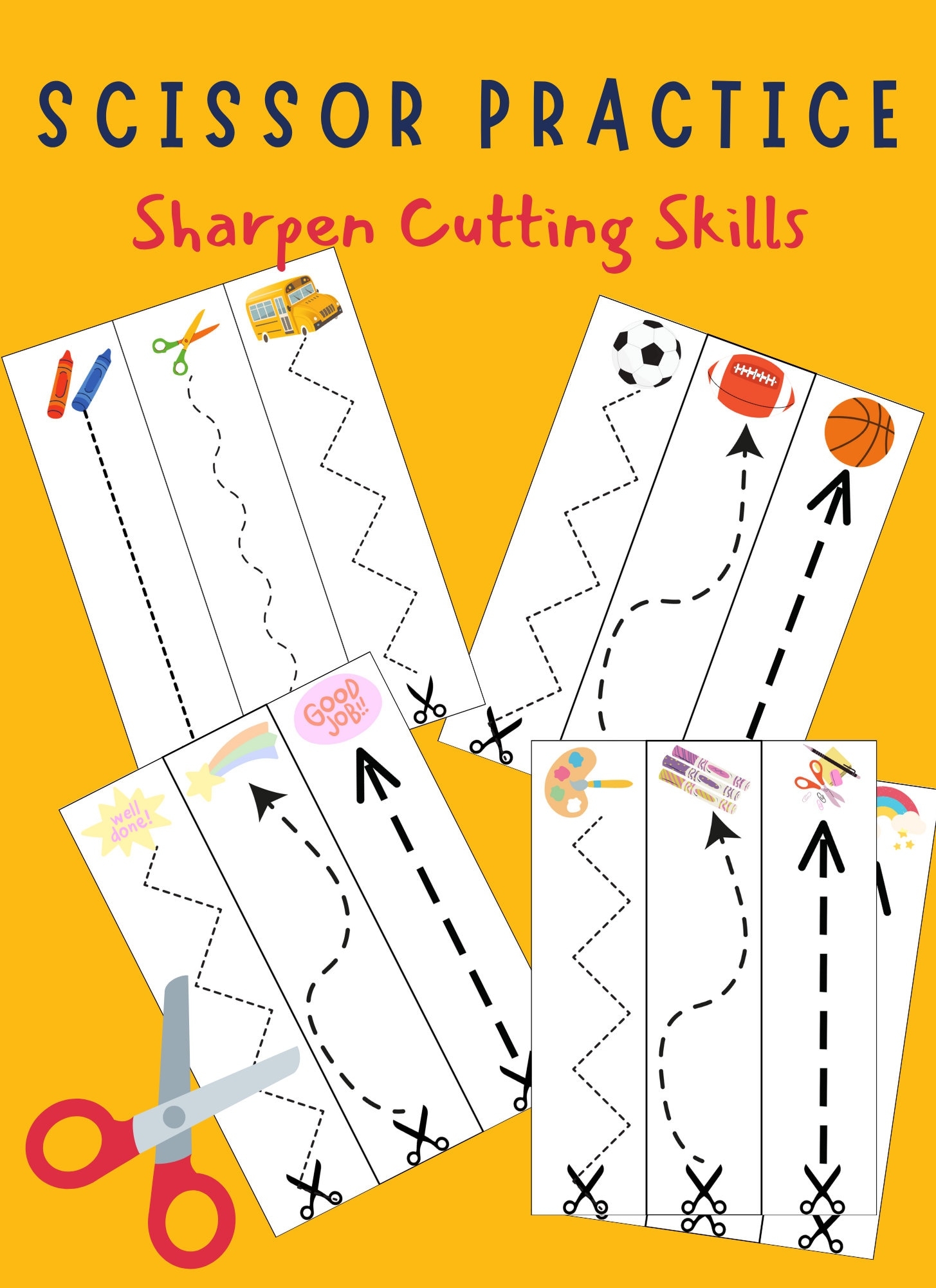 Not only do these cutting worksheets help children develop important motor skills, but they also encourage creativity and imagination. Your child can practice cutting along lines, creating shapes, and even making their own unique creations!